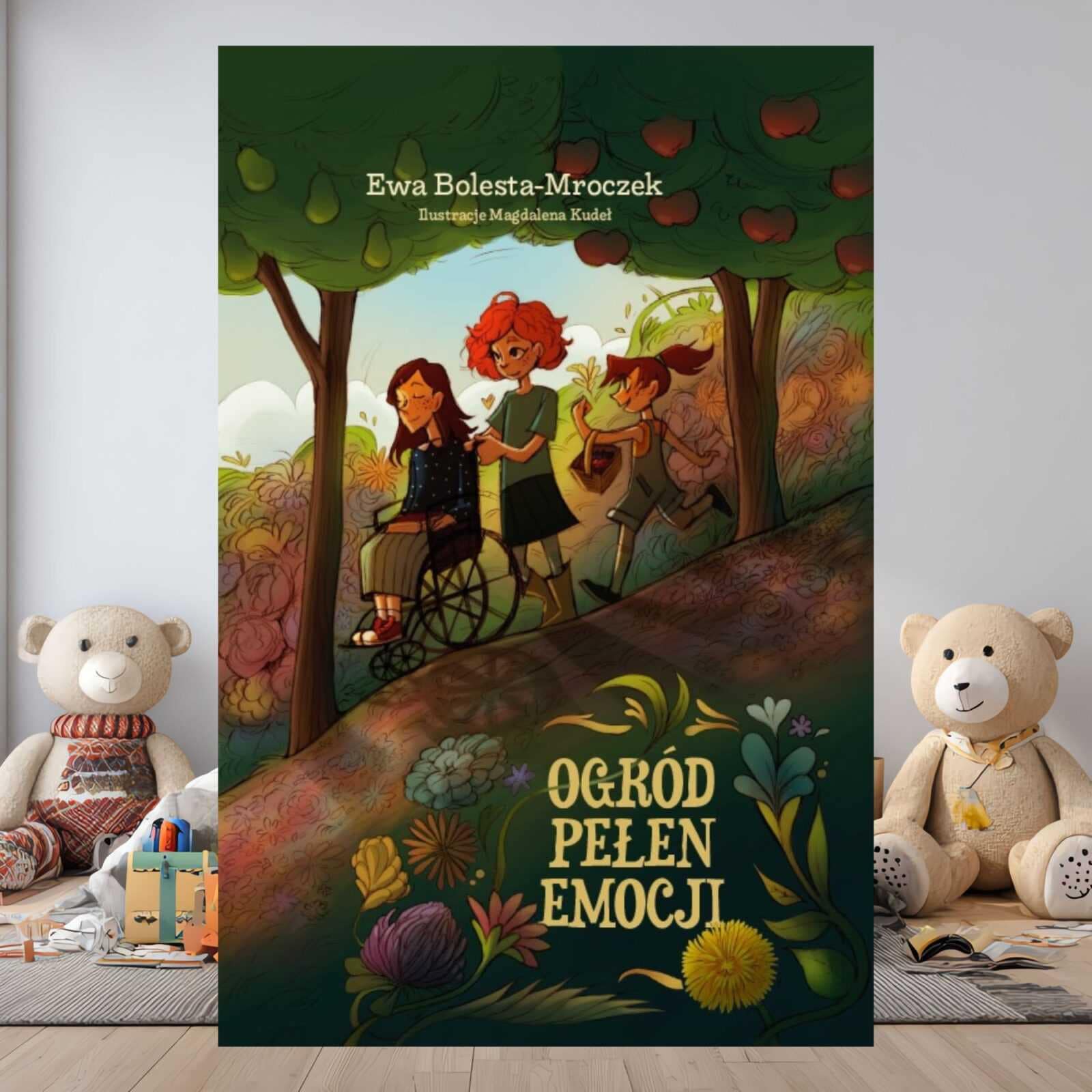 Bohaterkami książki “Ogród pełen emocji” są trzy siostry, które mieszkają w drewnianym domku na skraju wioski. Najstarsza jest Klementyna, skończyła już czwartą klasę, jest spokojna, zrównoważona i w każdej sytuacji widzi coś pozytywnego. Nie lubi narzekać, za to lubi cieszyć się małymi rzeczami. Jeździ na wózku inwalidzkim, który zrobił dla niej tata. Alicja też chodzi już do szkoły, skończyła właśnie trzecią klasę, jest bardzo energiczna i ciągle w ruchu. Najbardziej lubi czytać książki o zwierzętach. Zawsze zaskakuje siostry tym, co znajdzie w książkach, a najciekawsze informacje zapisuje w notatniku. Jest jeszcze najmłodsza Laura, która dopiero rozpoczyna swoją szkolną przygodę. Lubi podjadać, często się denerwuje, gdy coś jej nie wychodzi, i zazwyczaj niedowierza opowieściom Alicji o zwierzętach.
