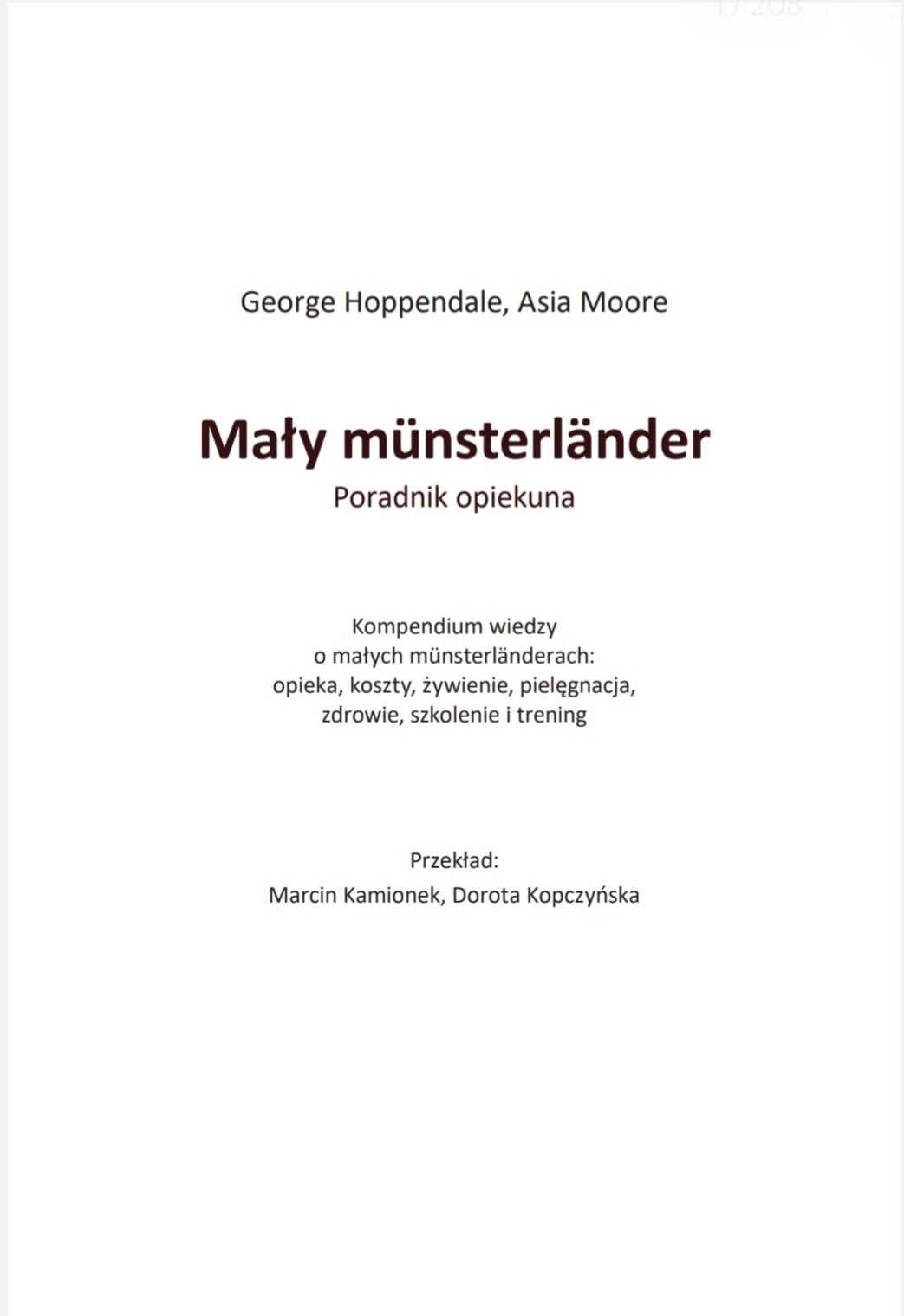 Mały münsterländer – poradnik opiekuna to książka przeznaczona przede wszystkim dla „tych, którzy pierwszy raz”: dla tych, którzy pierwszy raz mają małego münsterländera, dla tych, którzy pierwszy raz mają psa rasy myśliwskiej, i dla tych, którzy w ogóle pierwszy raz mają psa.